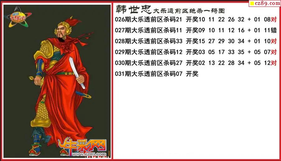 > 大乐透031期韩世忠前区绝杀一码图