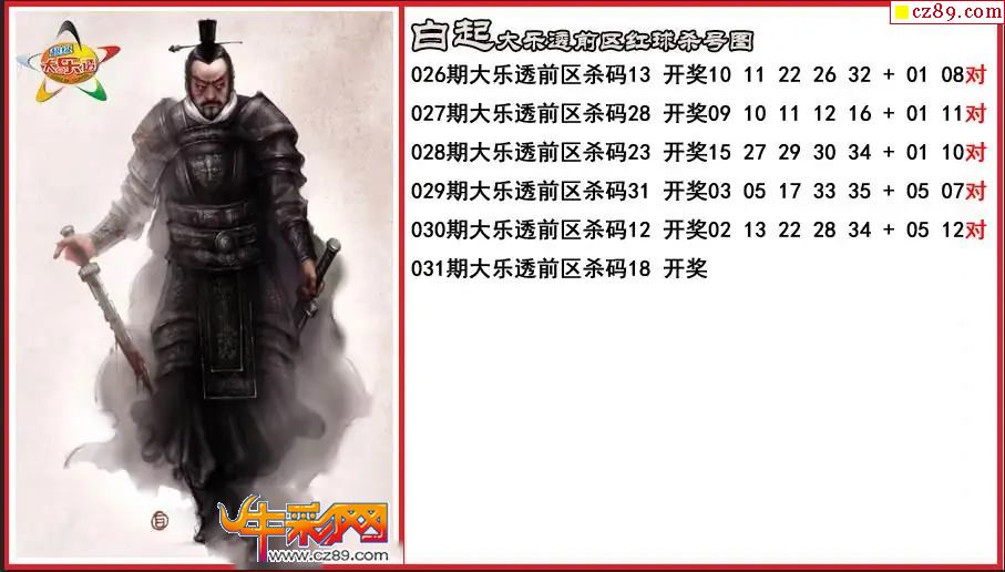 大乐透031期白起前区杀号图