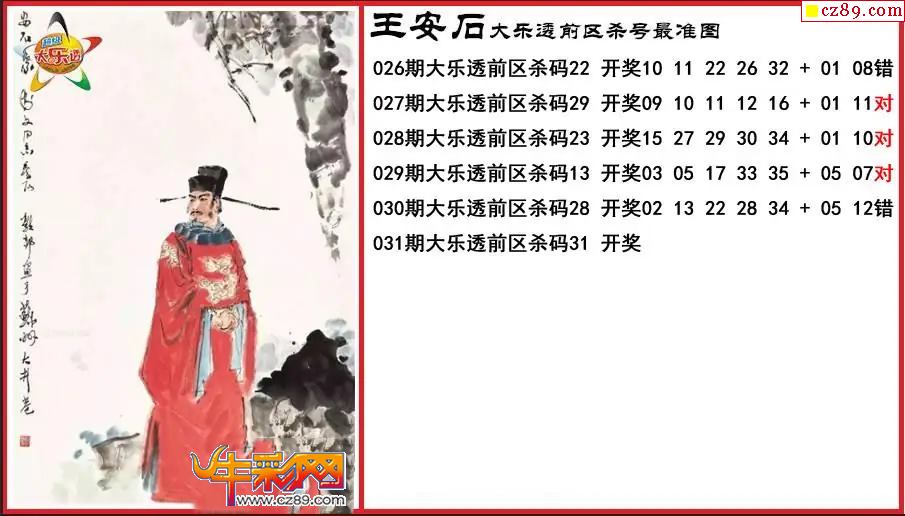 > 大乐透031期王安石前区杀号最准图